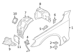 Without M8. Fender & components. Fender & liner, upper.